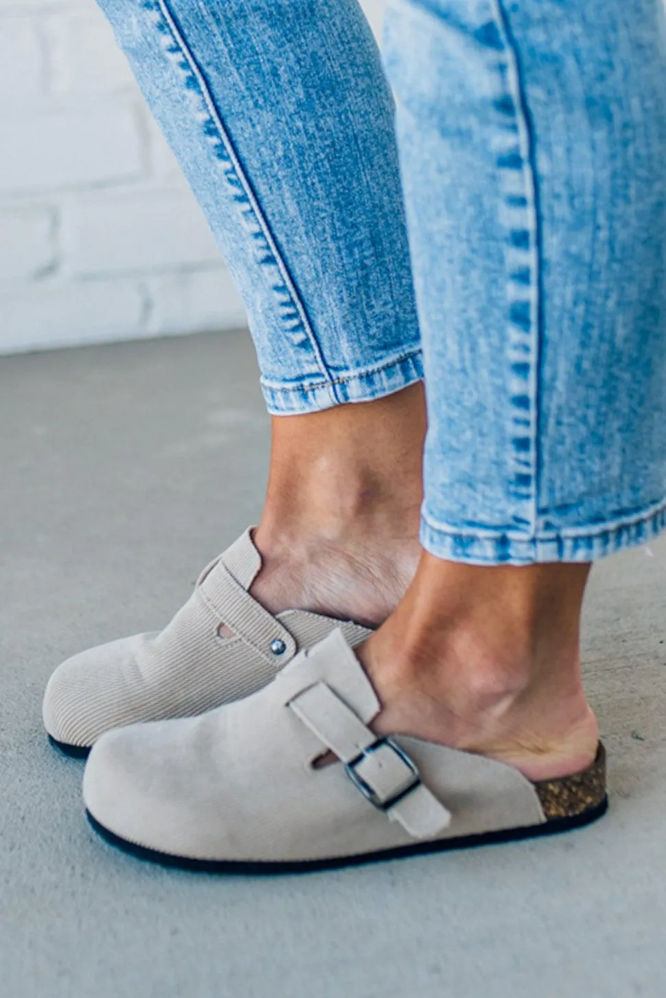 The Nolan Slip On Mules are a fashionable and comfortable option for every day. Crafted from soft mini ribbed corduroy and detailed with a cute side buckle, they provide a roomy wide width and easy on and off design. Perfect for work, play or a night out.