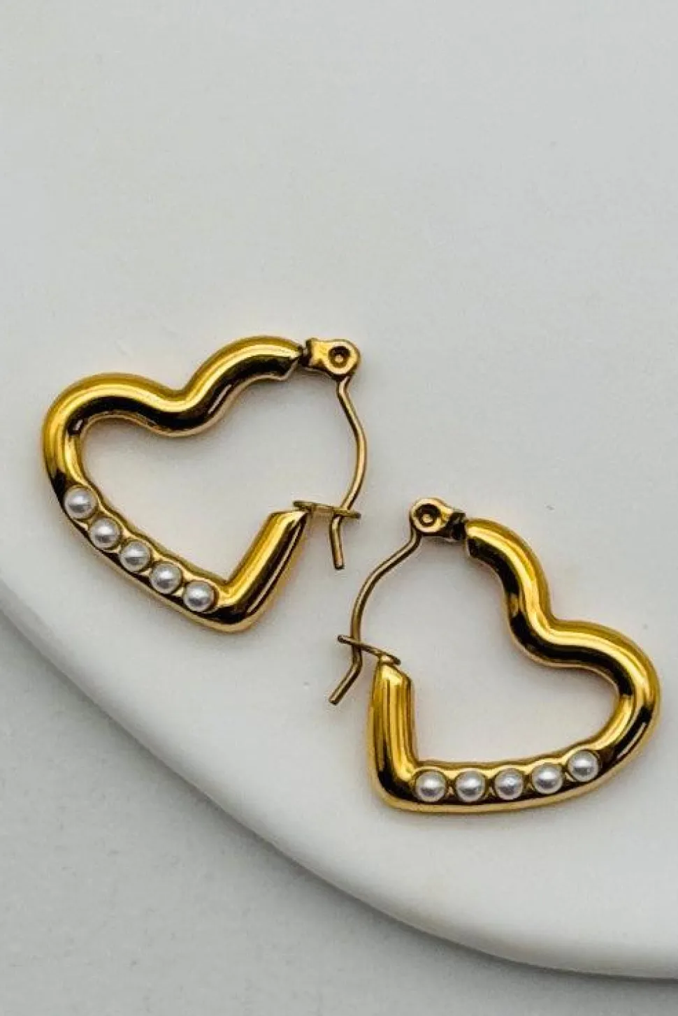 Add a touch of whimsy to any outfit with LUXE Pearl Accent Heart Hoops. These mini gold hoops feature 4 charming mini pearls, adding a playful twist to a classic accessory. Perfect for adding a hint of fun and elegance to your look.