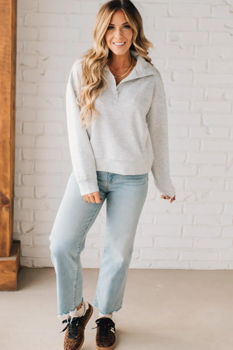 Unleash your playful side in our Quarter Zip Scuba Pullover. Made with scruba fabric, this athleisure waist length pullover features a quarter zip henley and kangaroo pocket. Perfect for the quirky and stylish individual, this pullover is versatile and comfortable, making it a must-have in your wardrobe.