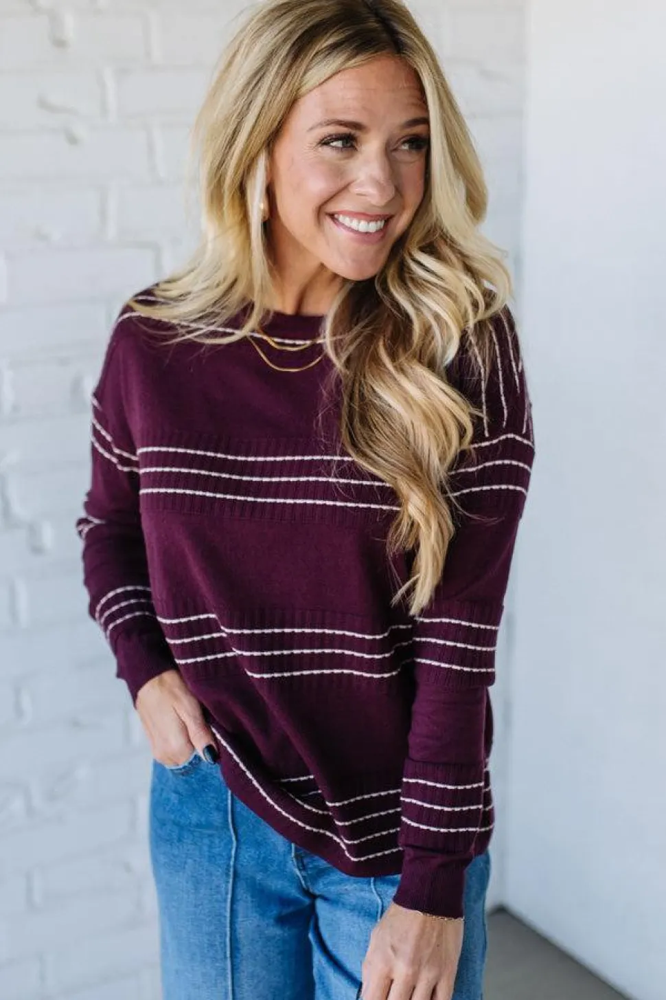 Soft, Simple, So Easy to Style! If “effortlessly put together” were a sweater, this would be it. The Ribbed + Stitched Stripe Sweater is your soft, neutral go-to for those crisp mornings that turn into cozy afternoons. Think coffee runs, school drop-offs, and casual catchups—all with just the right amount of polish. The stitched stripe detailing gives it texture without being loud, while the ribbed sections add structure in all the right places. It’s made with a silky-soft viscose blend that drapes beautifully and layers like a dream.