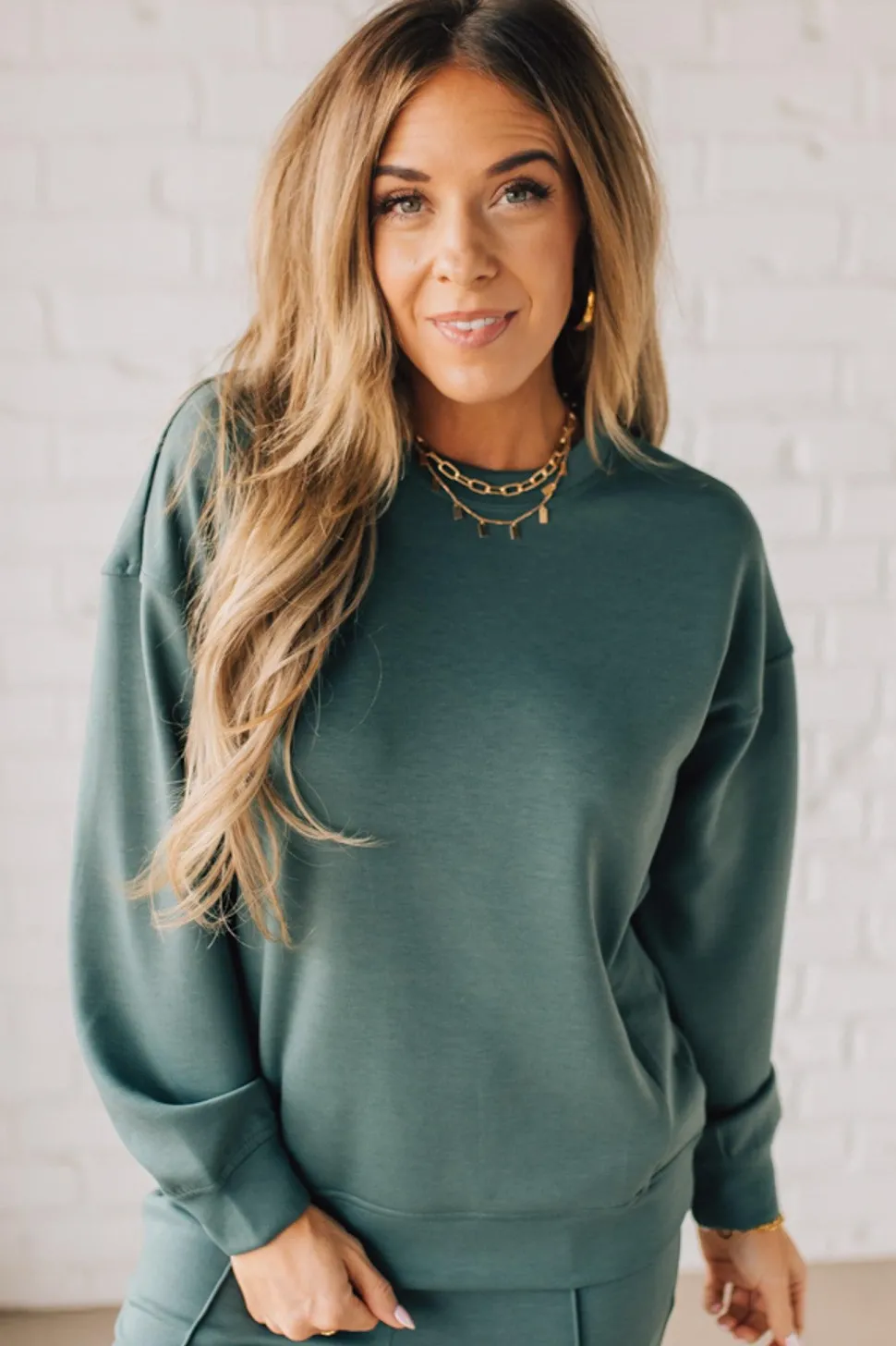 For slow mornings, nonstop days, and everything in between—this is the pullover that makes “just threw this on” look intentional. The Sights Set Scuba Pullover brings that polished-athleisure energy in the comfiest way possible. Made from a soft, featherlight scuba blend, it drapes with that luxe, structured feel that elevates even your leggings. The drop shoulders and boxy cut add just the right amount of slouch, while the high-quality finish keeps things feeling sleek.