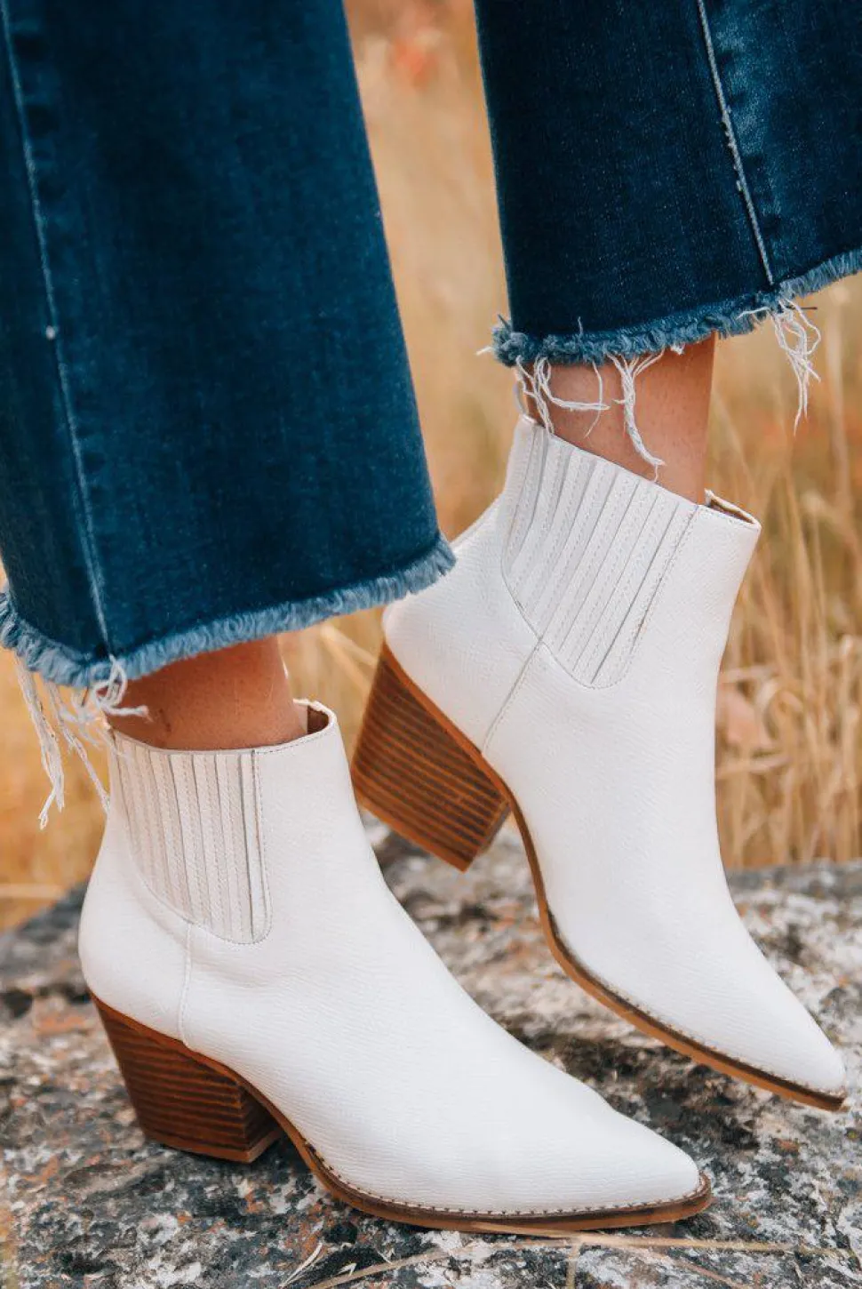 Pointy toed, ankle booties with an all over bold faux snakeskin texture!