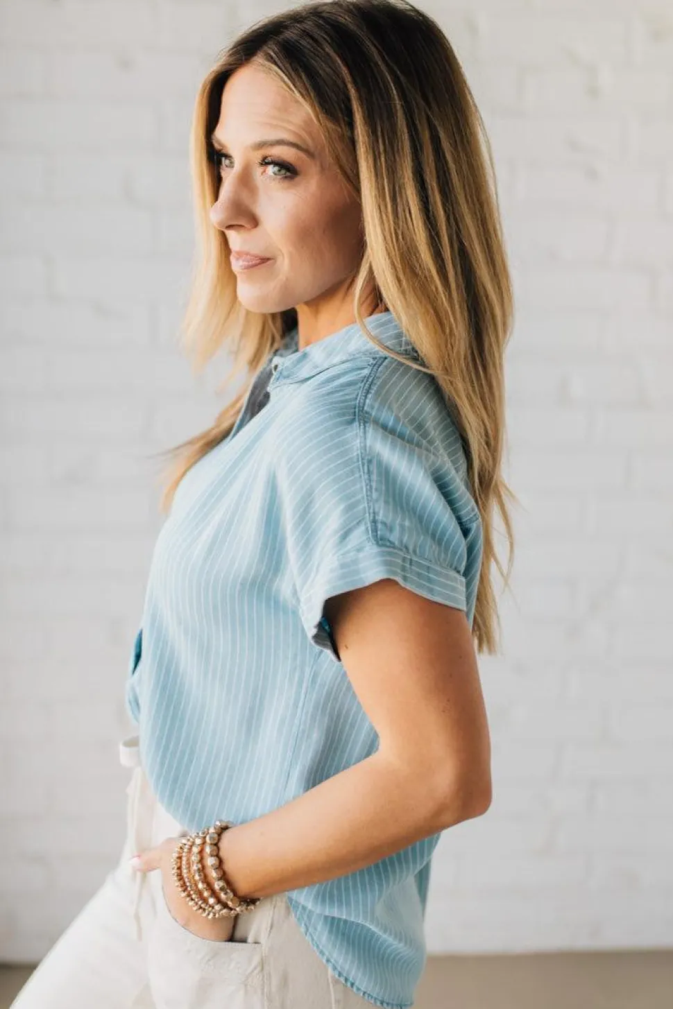 Upgrade your wardrobe with our Tencel Button Front Top! Made with Tencel fabric, this top offers a soft and lightweight feel. It features a button up front and rolled sleeves, making it perfect for any occasion. Comfort and style combined in one piece! (Note: No need to overthink your outfit with this top!)