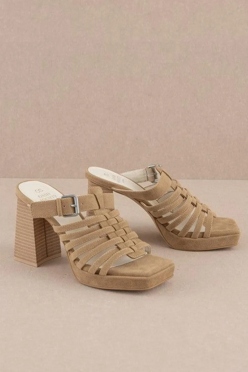 Step into style with the Trista Basketweave Buckle Heels. Made of vegan leather, these minimalist sandals feature a unique basketweave design and a playful platform heel. Complete with a fun buckle detail that adds a touch of whimsy. Walk tall and make a statement in these funky heels.