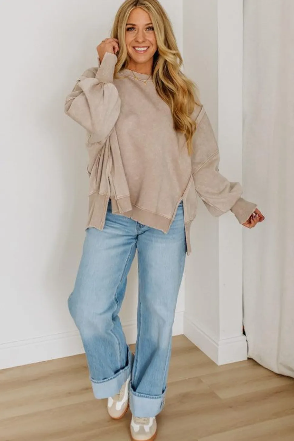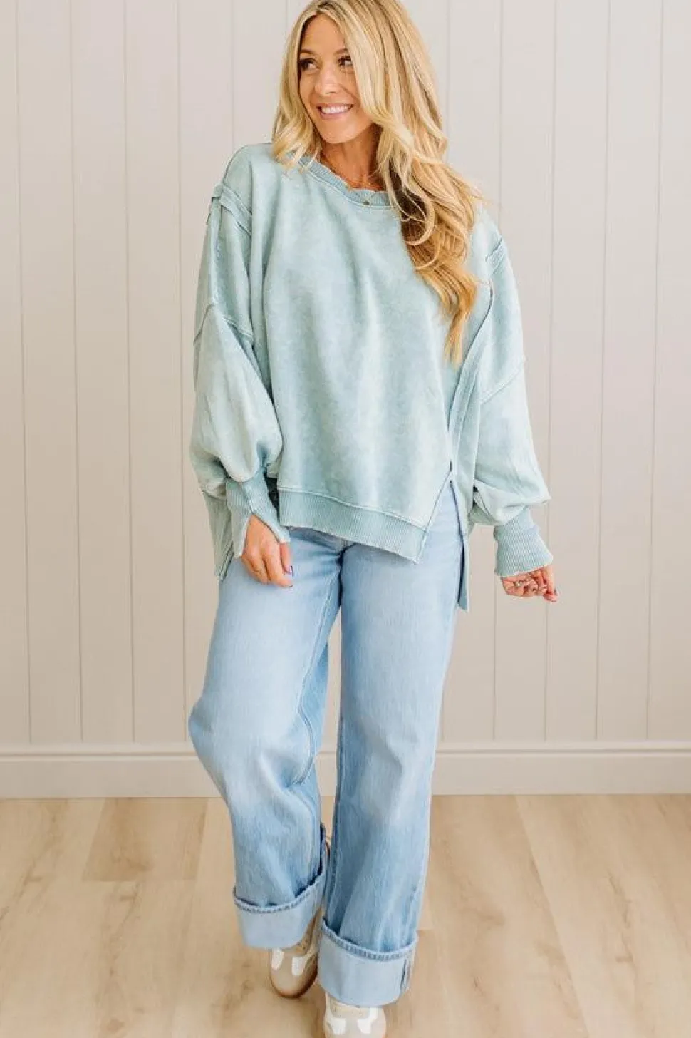Perfect for busy women who want cozy comfort without sacrificing style during weekend errands, coffee dates, and relaxed days at home. The Wide Neck Drop Shoulder Pullover delivers that lived-in, effortlessly cool vibe with its acid-washed finish and oversized silhouette that feels like your favorite vintage find.