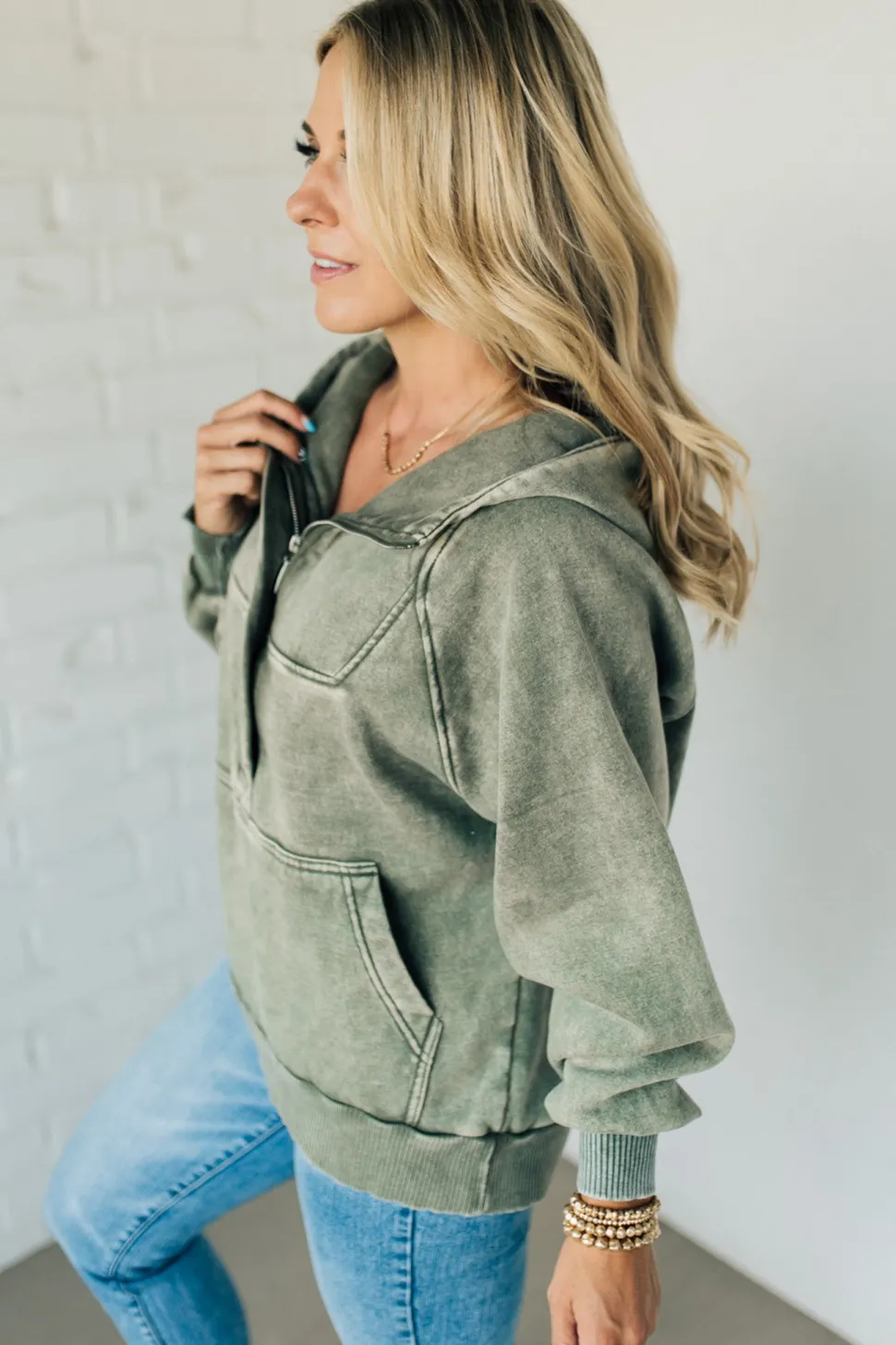 Made with plush fleece on the inside and a mineral wash finish on the outside, it feels like a warm hug but looks effortlessly cool. The full zip-front makes layering easy, while ribbed cuffs keep the cozy locked in. And yes — the pocket is huge enough to actually use (phone, snacks, hands… all good).